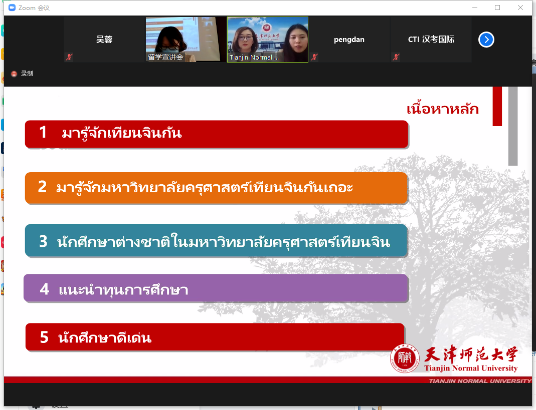 为进一步促进中泰文化教育交流,扩大来华留学生源,我校国际交流处、留学生服务管理中心管理干部于3月24日参加了HSK泰国(线上)留学中国宣讲会。